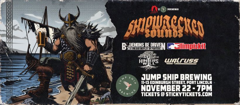 Port Lincoln!! Time to get hostile Shipwrecked Sounds mini festival is coming to Jump Ship Brewing Port Lincoln Featuring Adelaide based Pantera & Limp Bizkit tributes plus local legends Hinters Will and Walruss. Tickets through stickytickets.com.au and getcha pull!!!